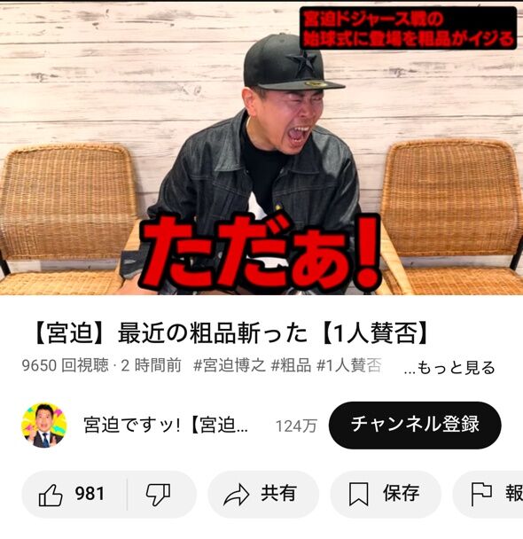 あの宮迫さんが2時間で10000再生いってないの悲しいンゴ